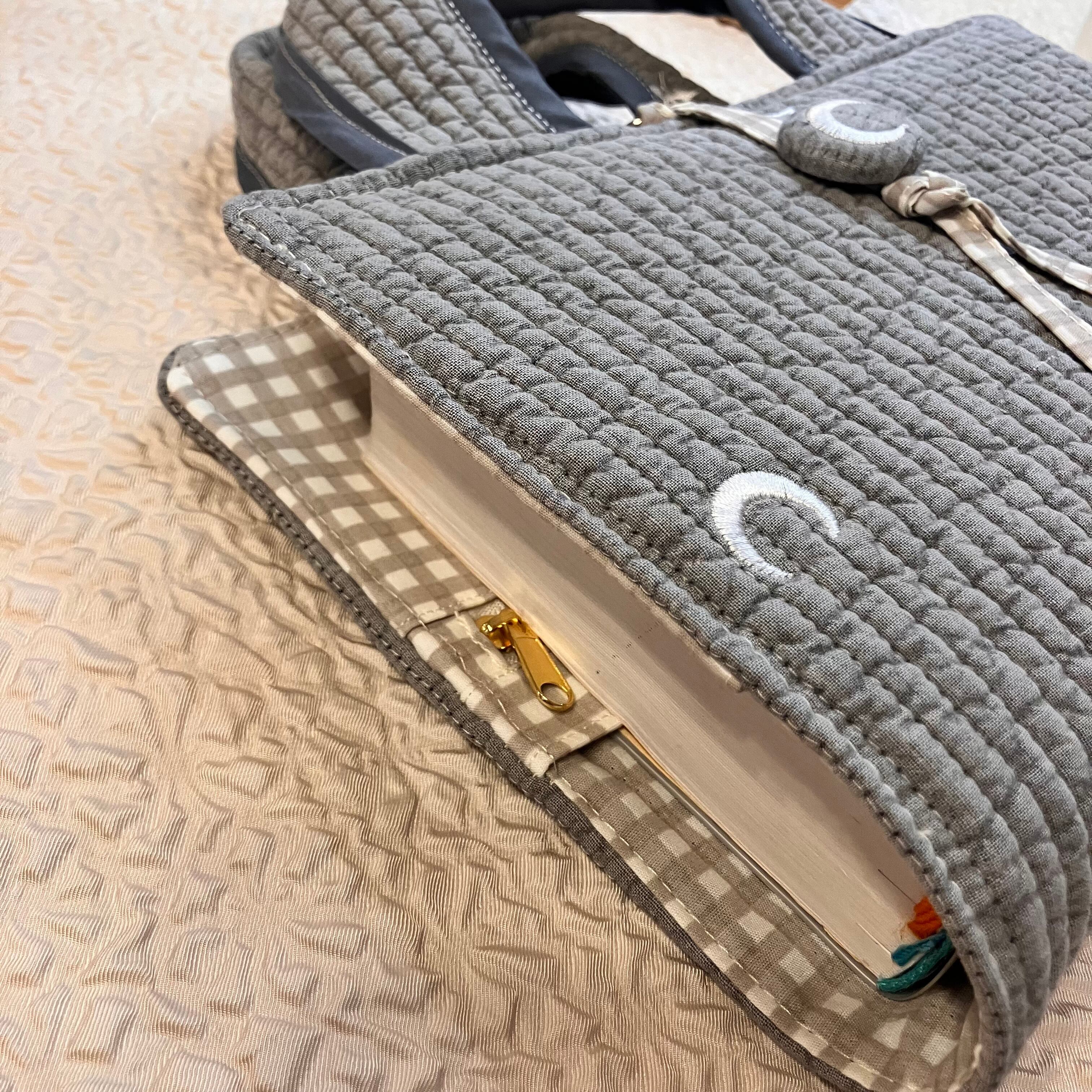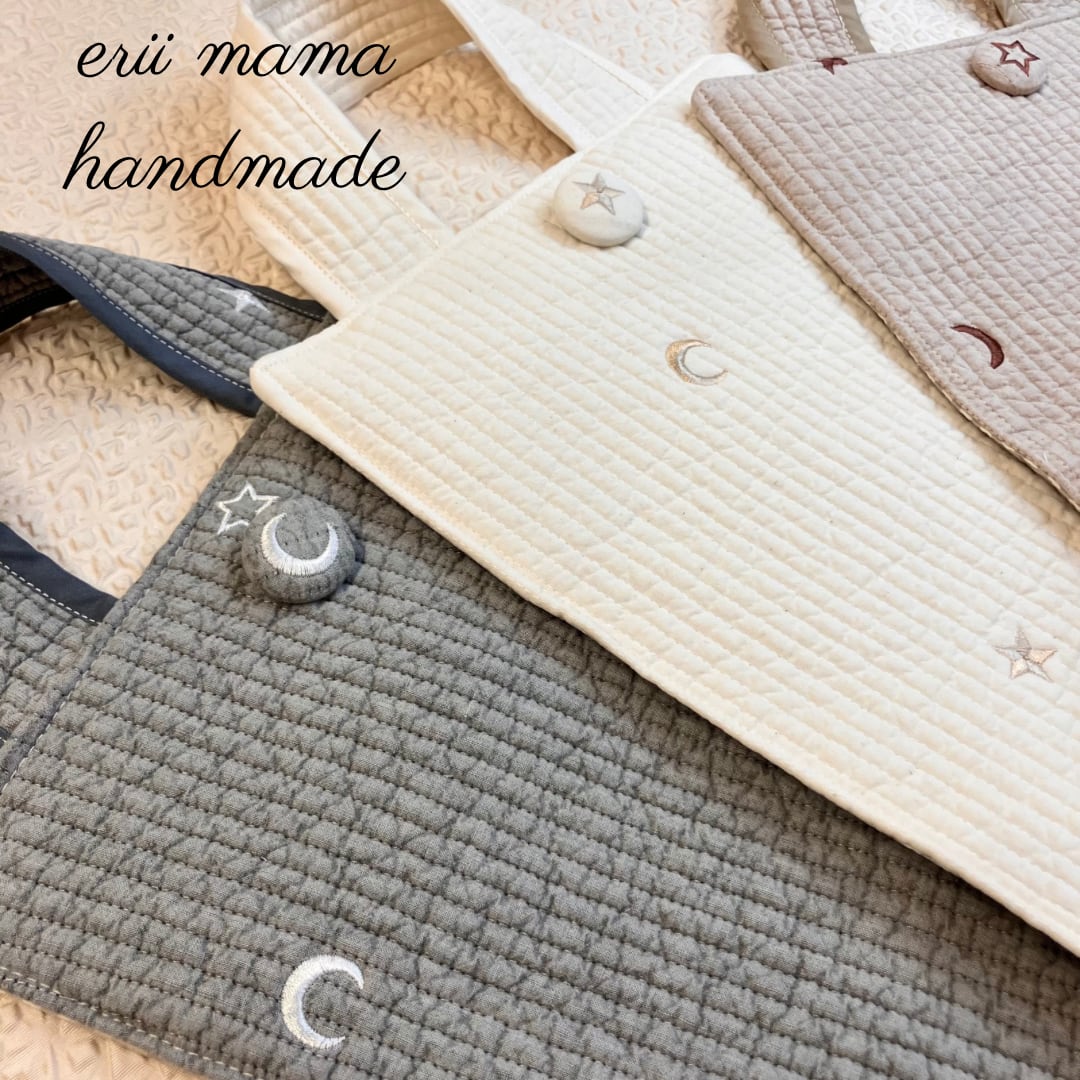 ⚫︎持ち手は、ヌビの生地を使用。周りに、バイアステープを使って作成しておりますので、しっかり丈夫な作りになっております